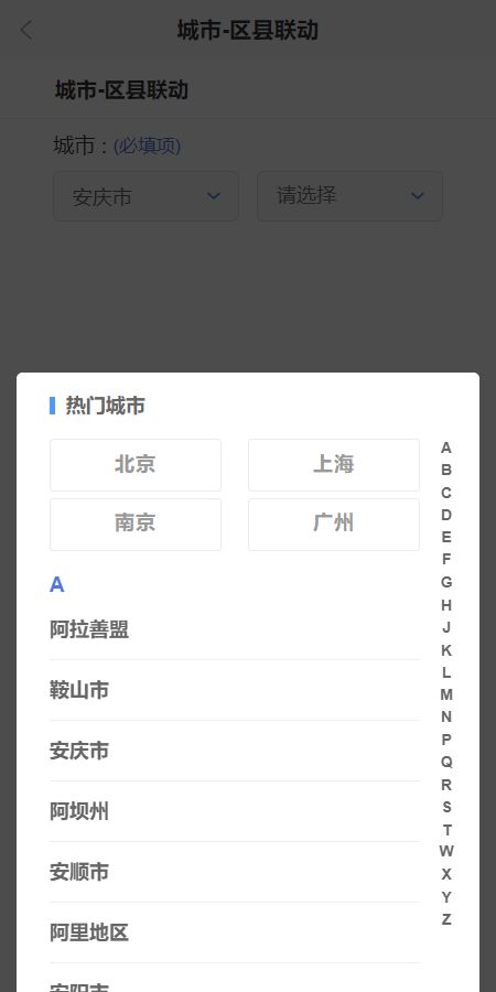 jQuery移动端城市/区县联动选择