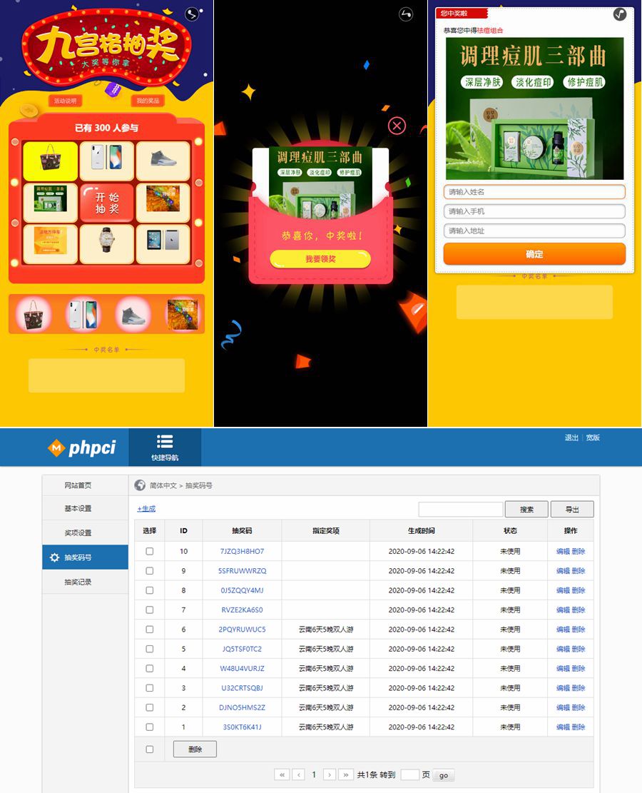 幸运九宫格抽奖码,九宫格抽奖系统源码php+mysql,微信抽奖系统
