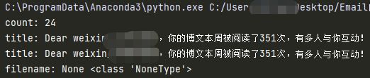 print("title:", title)其中,msg变量保存的就是邮件的主体,接下来因为会重复用到msg和tilte,我们将构造一个类函数返回msg和title。