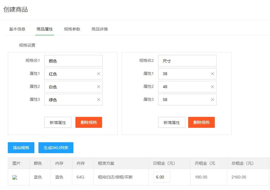 不同的系统有不同的需求,以下的需求就是要添加完各种规格后批量生成sku的。