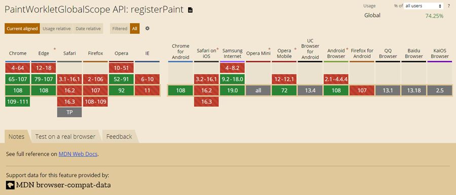 CanIUse - registerPaint 数据如下(截止至 2022-11-23):