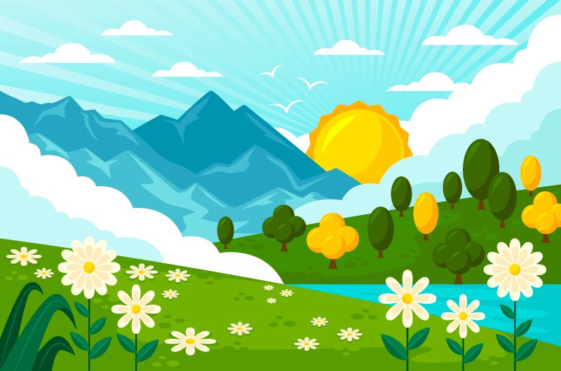 转载请声明来自:站长图库 - 太阳升起照耀大地设计春天景色矢量素材使用声明: