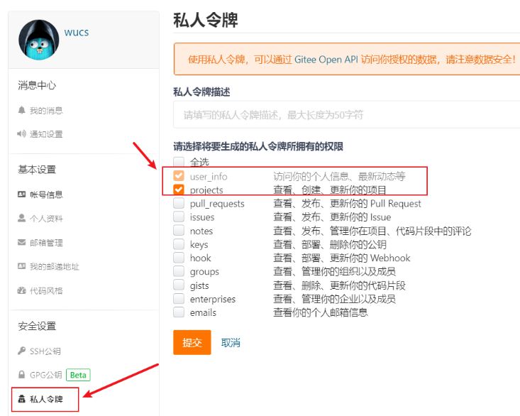 依次找到:设置--私人令牌--生成新令牌