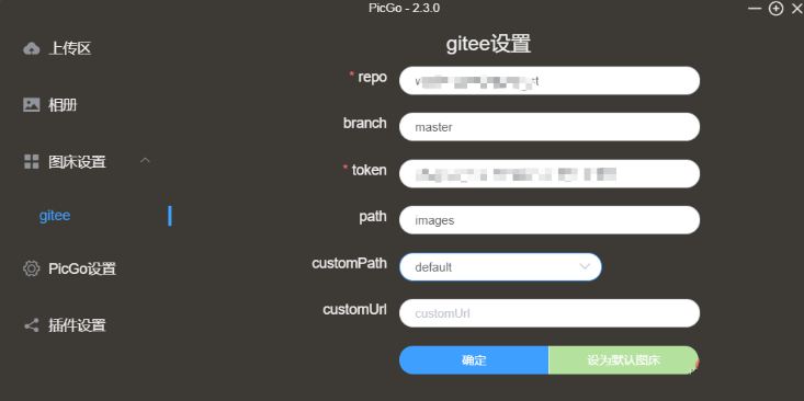 填写完毕后,点击确定,并设置为默认图床。