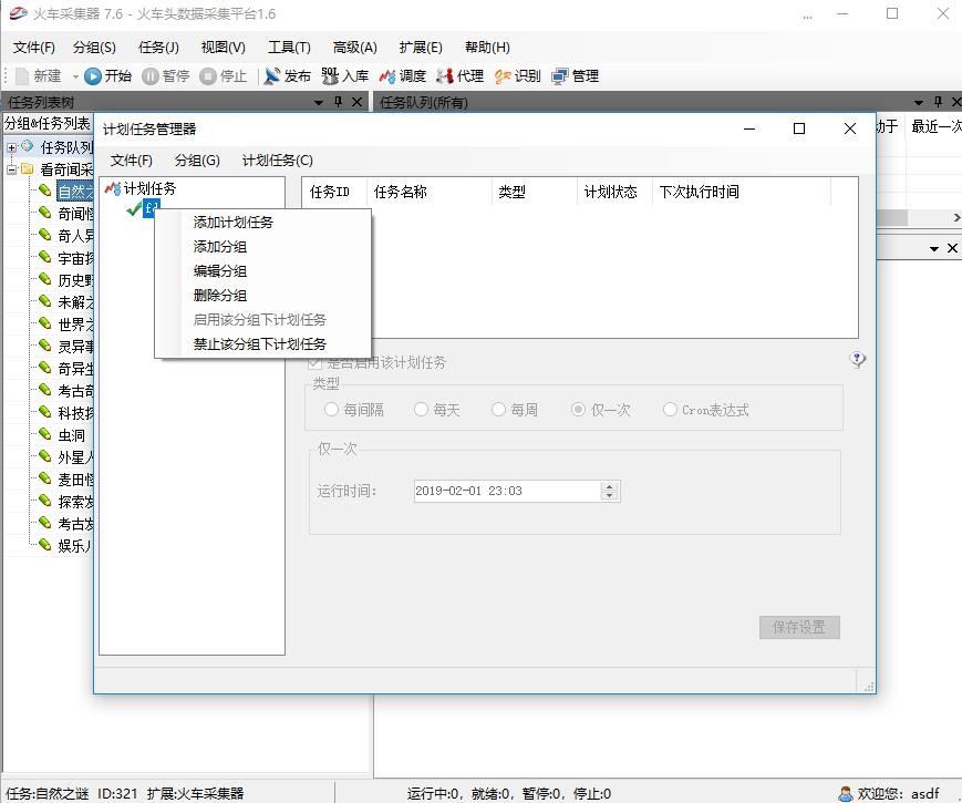 五、如果需要自动采集,则在高级计划任务里面添加任务: 可以设置间隔中多久采一次,或者每天定点采集