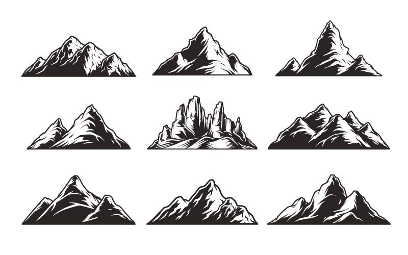九个手绘黑白风格的山脉矢量素材