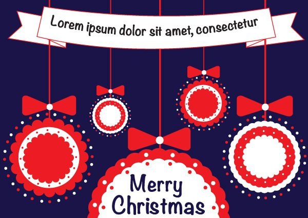 圣诞节快乐球,彩带贺卡设计矢量素材下载