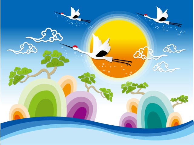 仙鹤飞行梦幻背景设计矢量素材下载