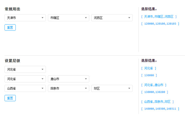 jQuery多级联动城市选择组件