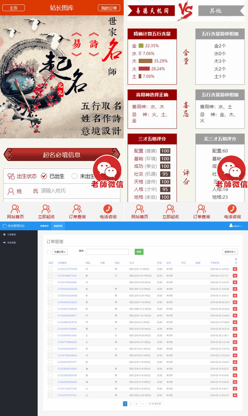 宝宝起名/八字起名/周易取名/周易八字起名平台网站/在线付费起名源码,thinkphp框架开发周易八字起名网宝宝起名在线下单网站源码自适应可二开,PHP权威起名策划机构平台源码,Thinkphp3.2给宝宝起名在线算命网站站码之家源码,宝宝取名在线下单平台源码支持手机wap