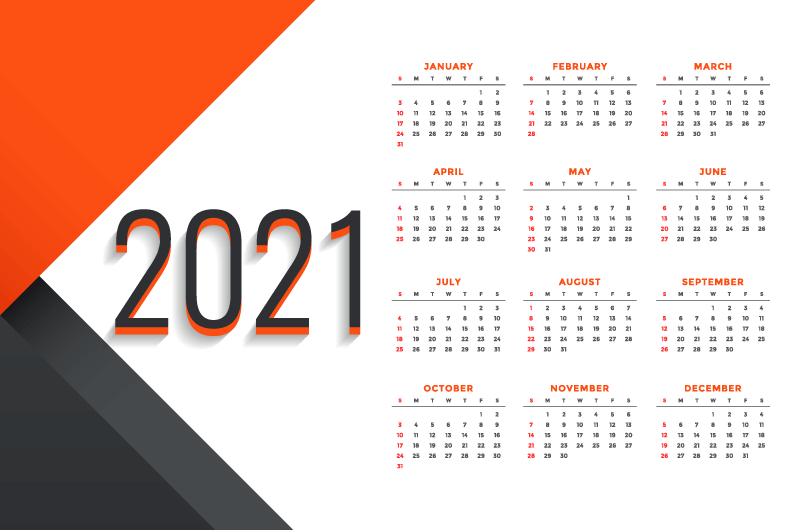 转载请声明来自:站长图库 - 现代商务风格2021年日历矢量素材使用声明: