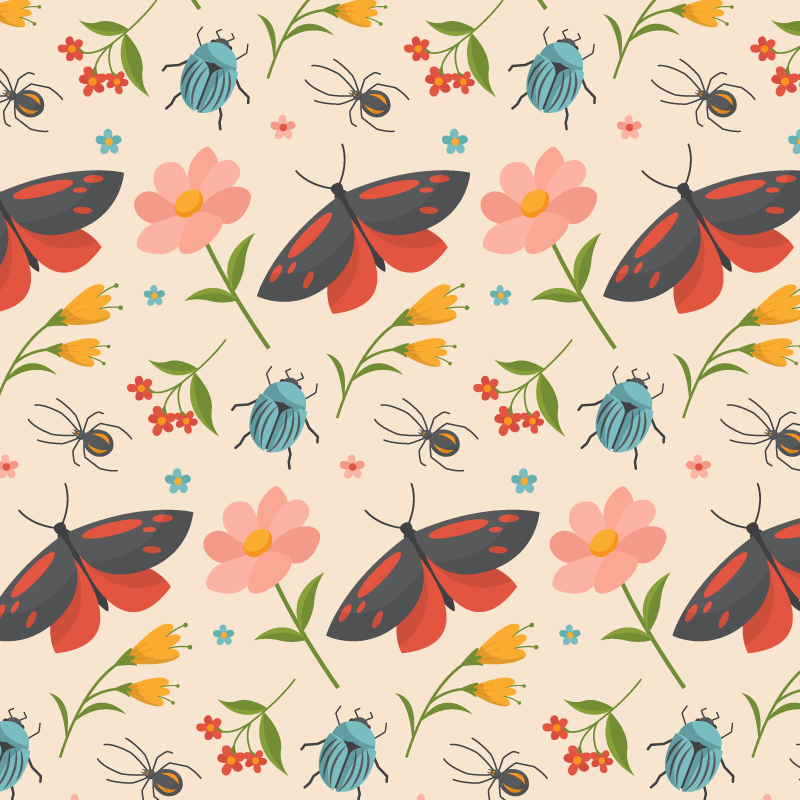 转载请声明来自:站长图库 - 花卉和昆虫图案背景矢量素材使用声明: