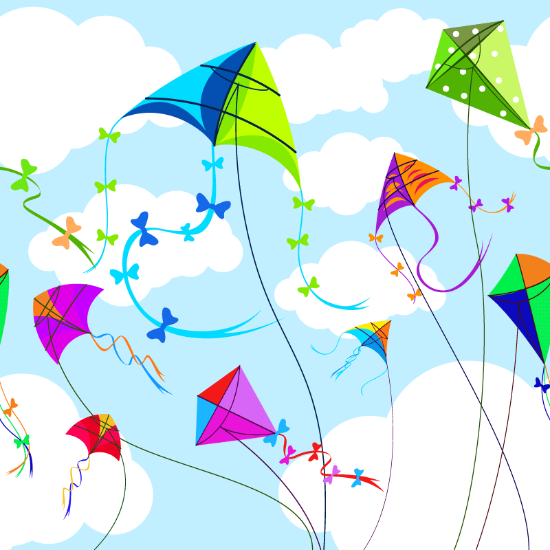 转载请声明来自:站长图库 - 天空中飘着的多彩风筝矢量素材使用声明: