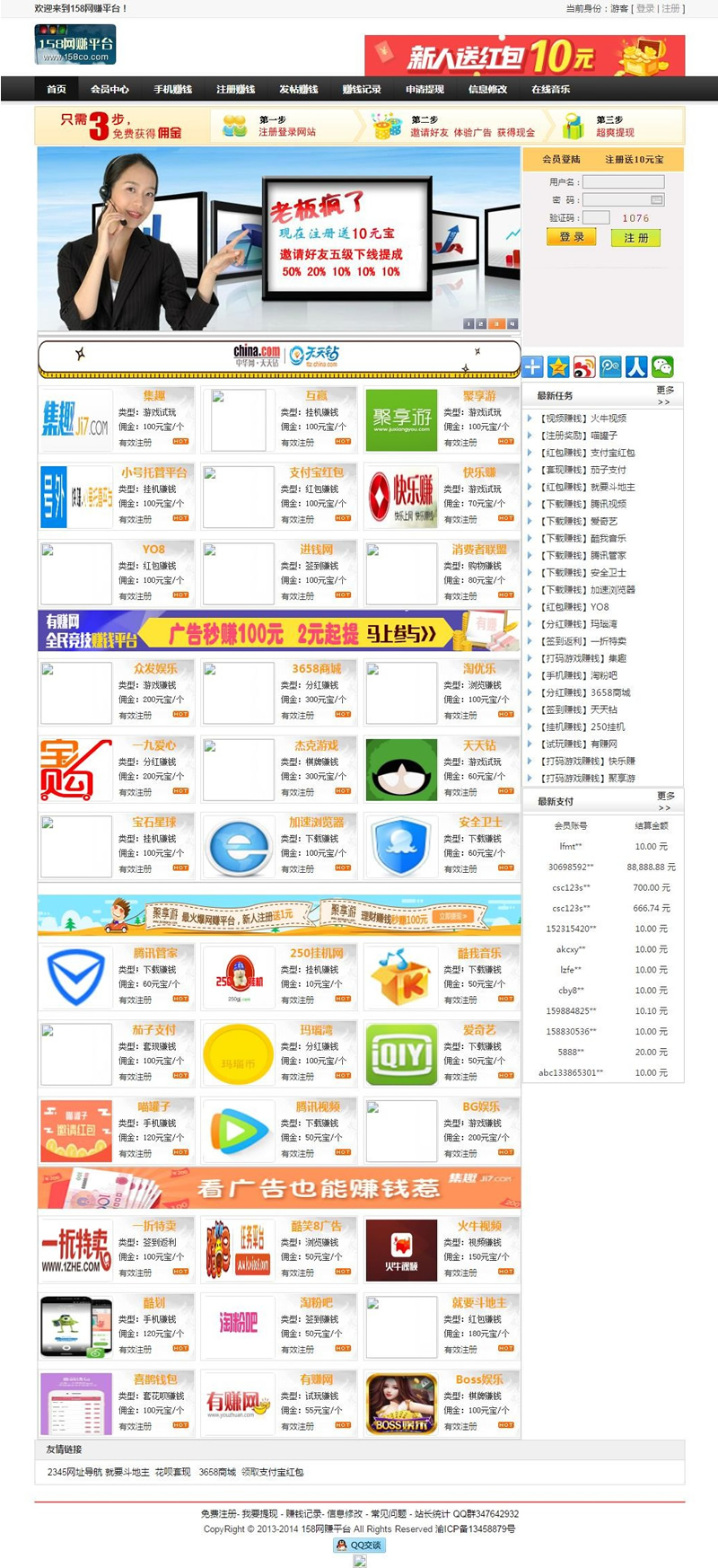 转载请声明来自:站长图库 - 158兼职赚钱平台源码 天下兼职源码 网络兼职源码使用声明: