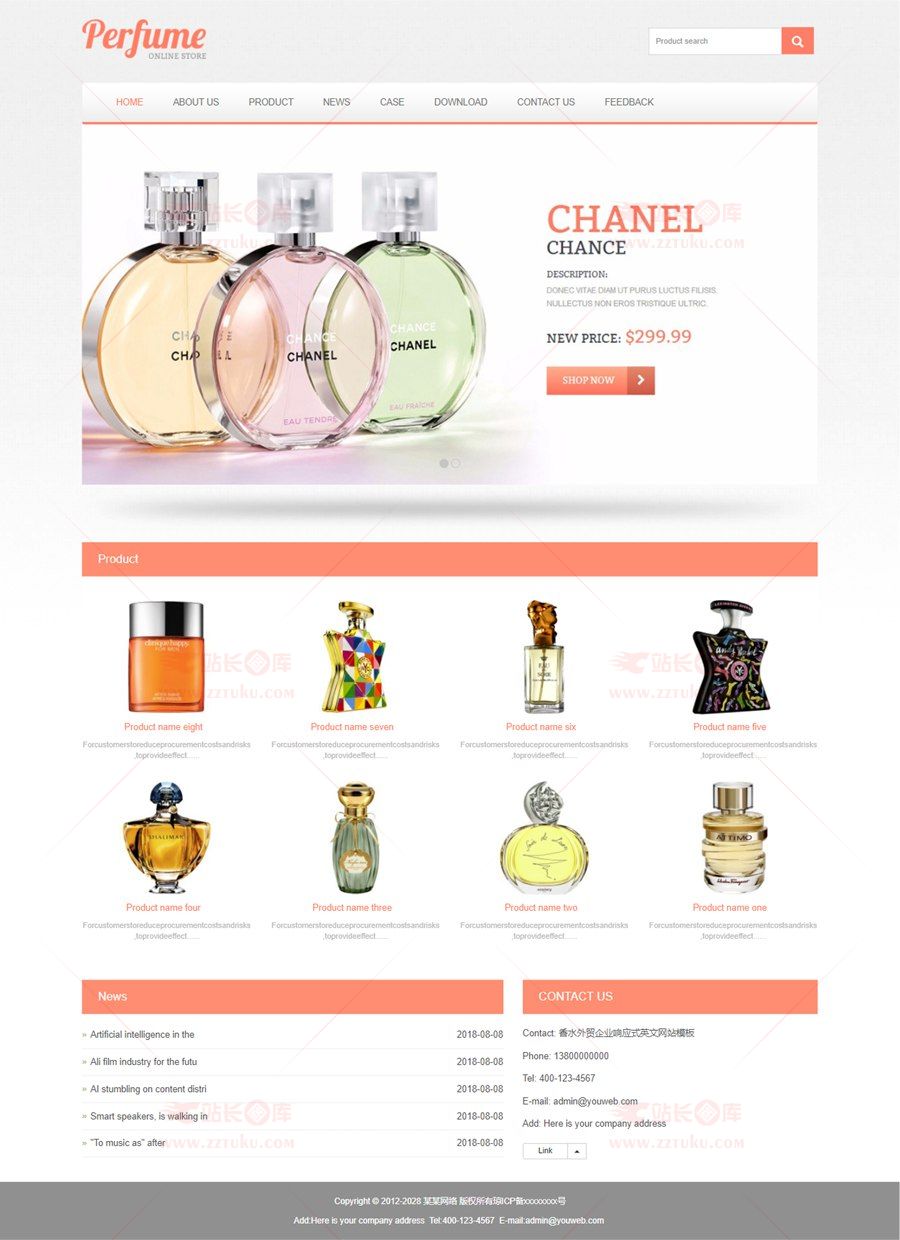 EyouCMS香水外贸企业响应式英文网站模板,易优CMS外贸类企业网站模板下载。适用于营销型外贸商城网站使用。模板自带eyoucms内核,无需再下载eyou系统,原创设计、手工书写DIV+CSS,完美兼容IE7+、Firefox、Chrome、360浏览器等;主流浏览器;结构容易优化;多终端均可正常预览。