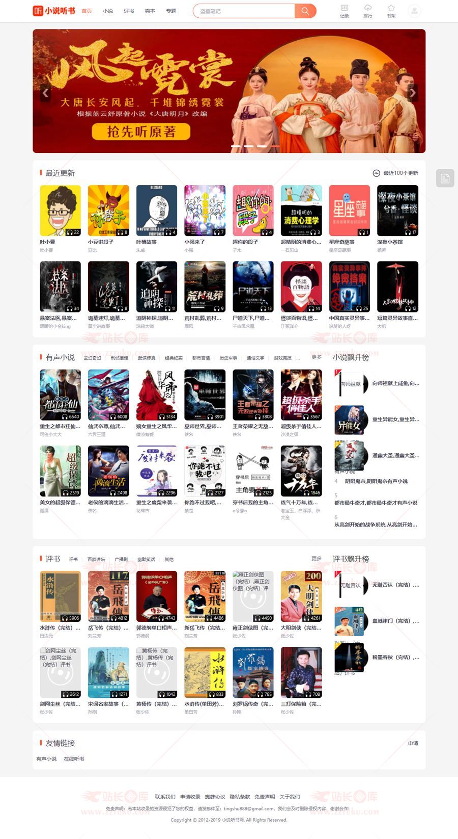 转载请声明来自:站长图库 - PTCMS4.28听书源码/在线听书有声小说网站源码+详细安装教程使用声明: