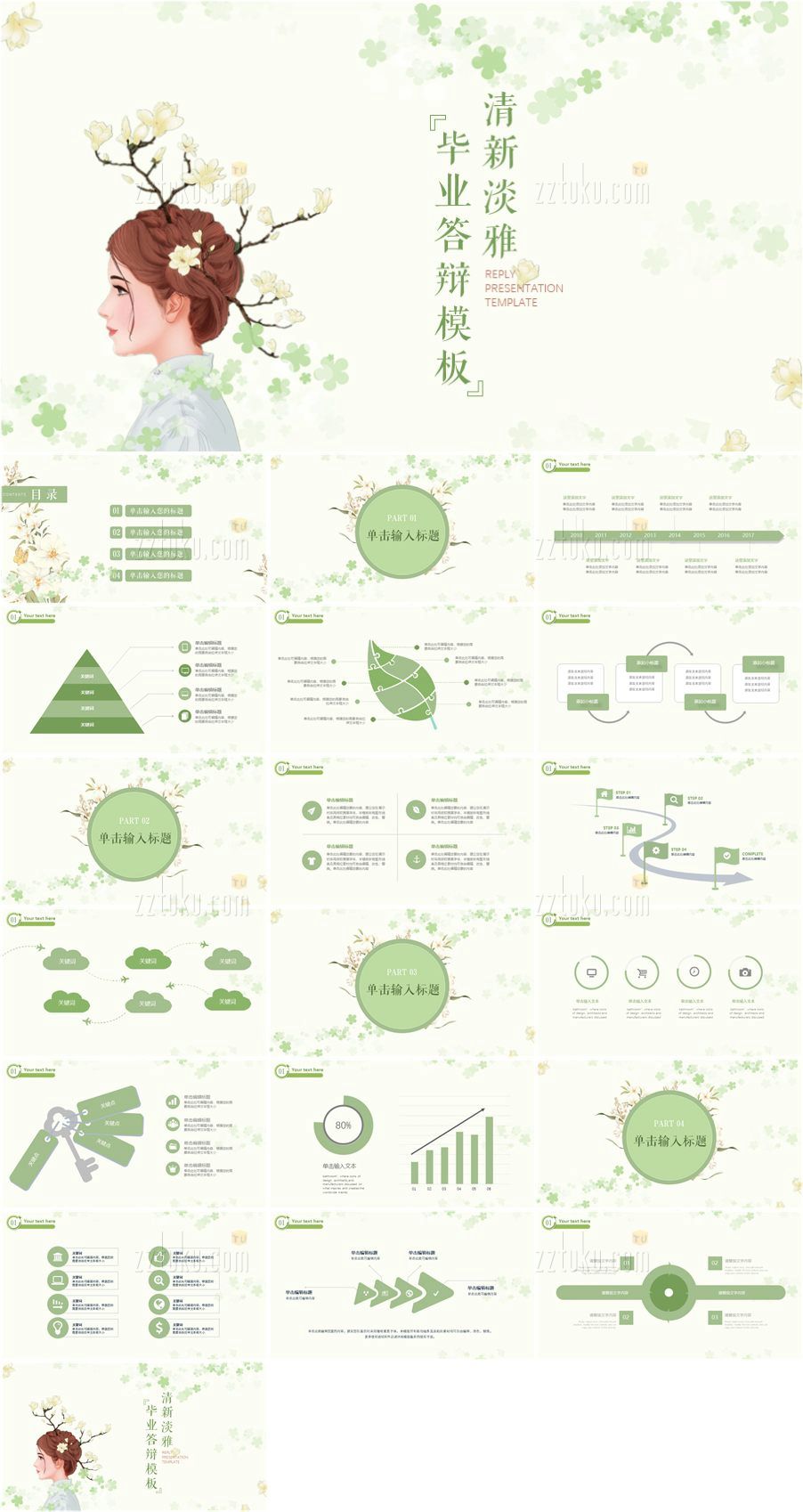 转载请声明来自:站长图库 - 清新淡雅毕业答辩PPT模板使用声明:
