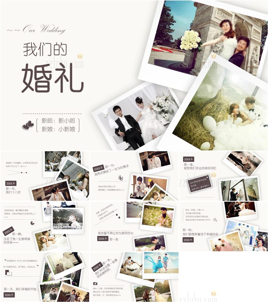 转载请声明来自:站长图库 - 动态浪漫婚纱照相册PPT模板使用声明: