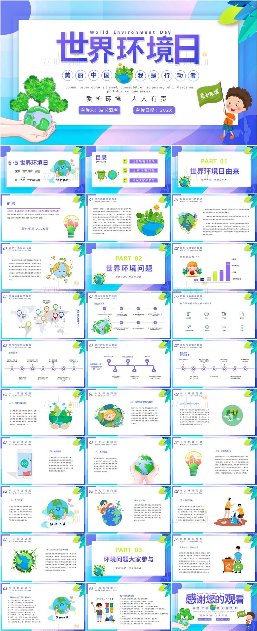 转载请声明来自:站长图库 - 世界环境日主题班会PPT模板使用声明: