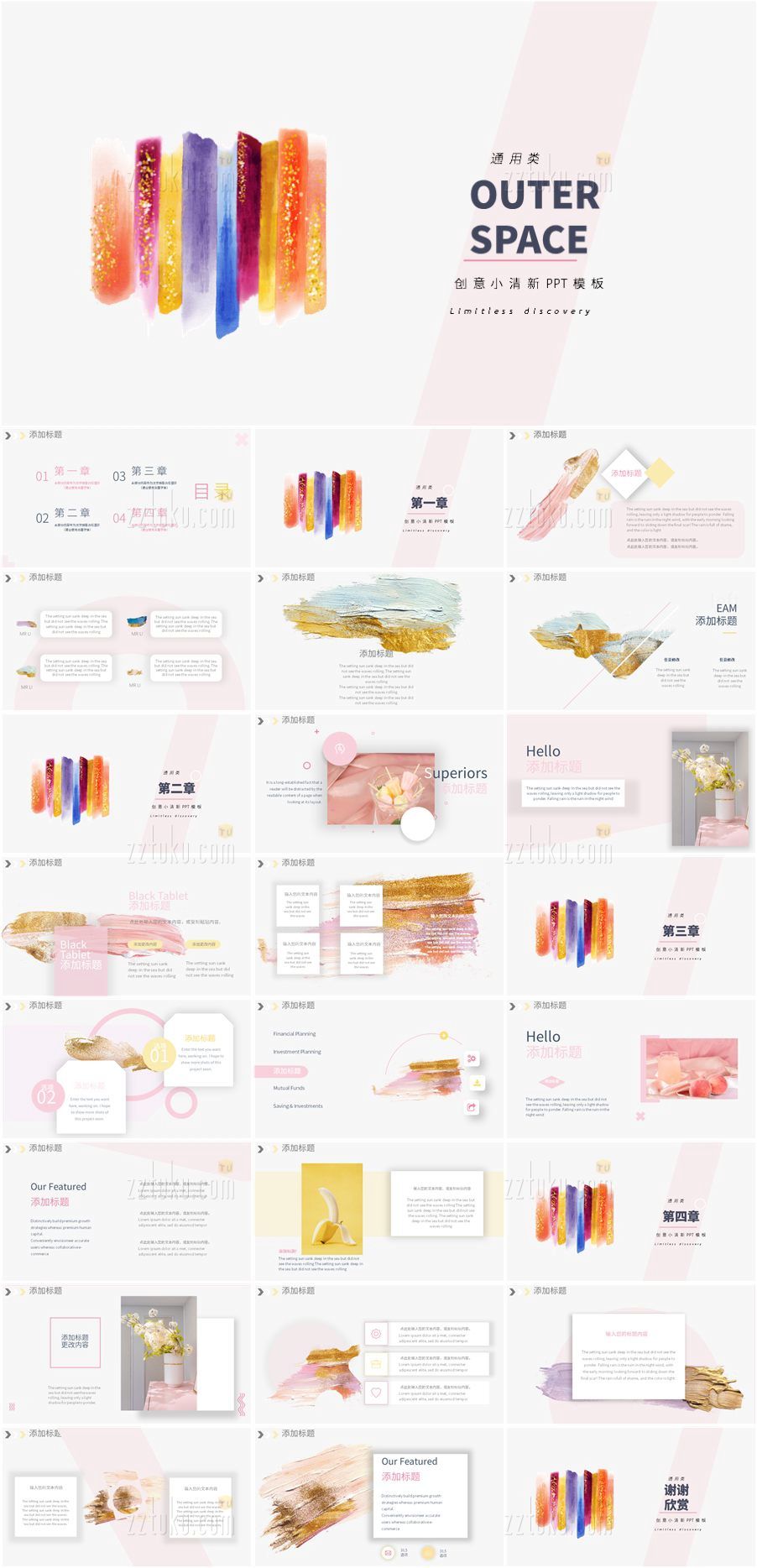 转载请声明来自:站长图库 - 小清新简约彩色墨迹PPT模板使用声明: