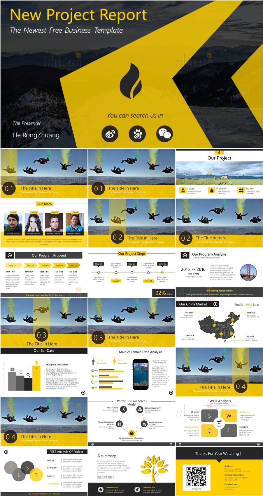 转载请声明来自:站长图库 - 醒目黑黄配色杂志风PPT模板使用声明: