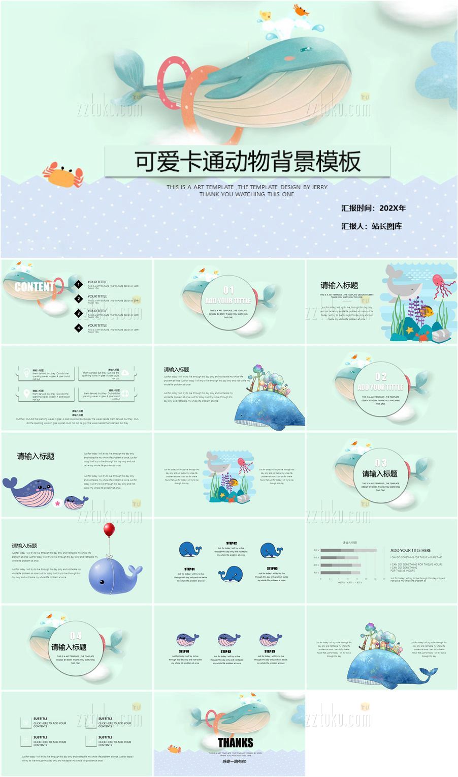 转载请声明来自:站长图库 - 精美可爱卡通鲸鱼教学课件PPT模板使用声明: