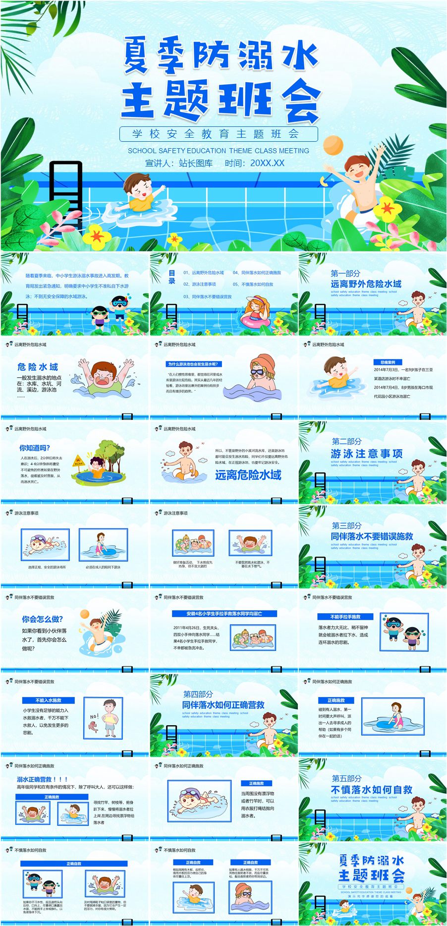 转载请声明来自:站长图库 - 夏季防溺水主题教育班会PPT模板使用声明: