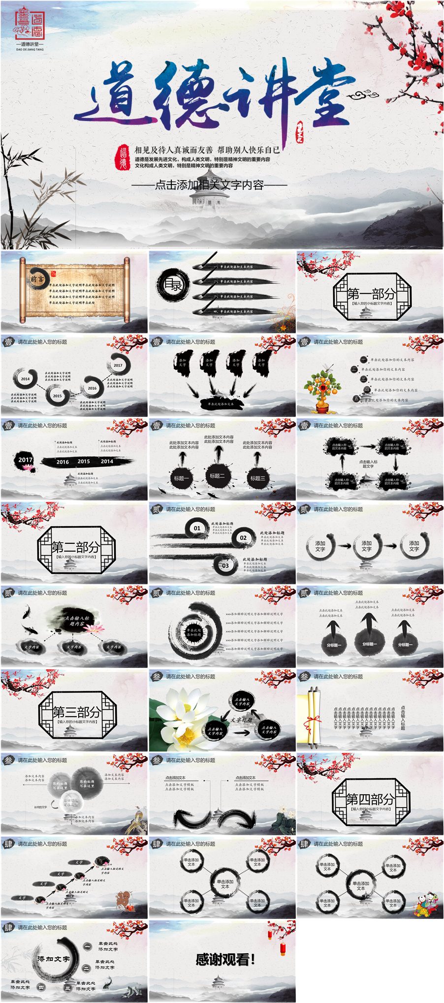 转载请声明来自:站长图库 - 动态中国风道德讲堂PPT模板使用声明: