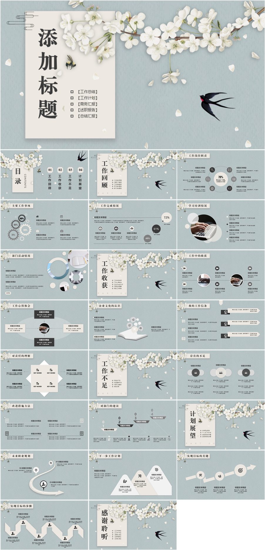转载请声明来自:站长图库 - 淡雅唯美春天燕子PPT模板使用声明: