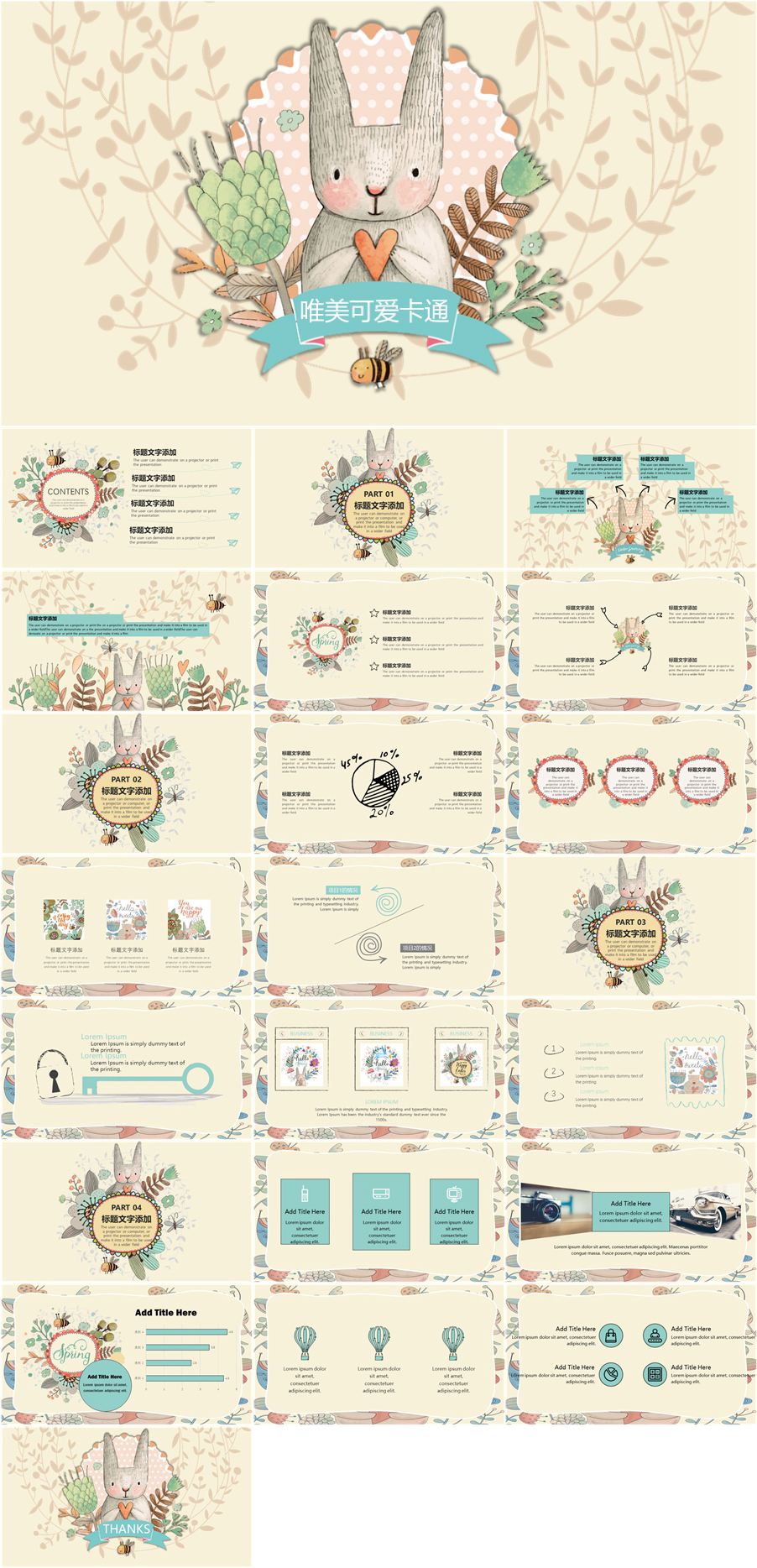 转载请声明来自:站长图库 - 唯美可爱卡通动物PPT模板使用声明:
