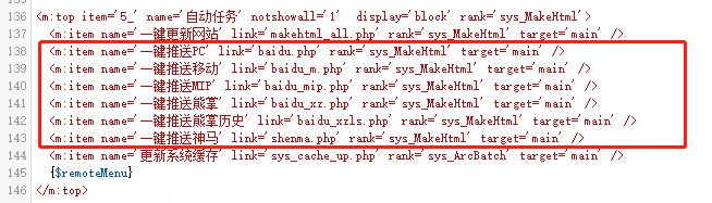 <m:item name='一键推送PC' link='baidu.php' rank='sys_MakeHtml' target='main' /> <m:item name='一键推送PC' link='xz.php' rank='sys_MakeHtml' target='main' />