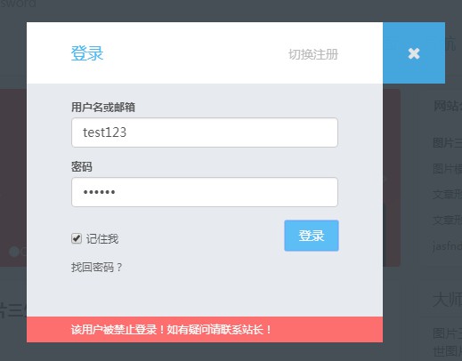 WordPress主题纯代码实现禁止某些用户账号登录,下面这段代码主要实现用户登录时提示用户该账号已被禁用,如此简单的问题,百度肯定有答案,果不其然,百度一番后找到可用代码,不过确不能和前端匹配,于是简单修改下DUX主题的登录接口,实现效果如下。