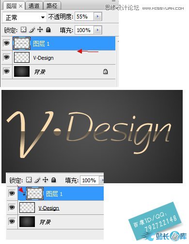 6.做出图中那样的渐变,摁ctrl+D取消选择,把该图层的不透明度改为"55%"。