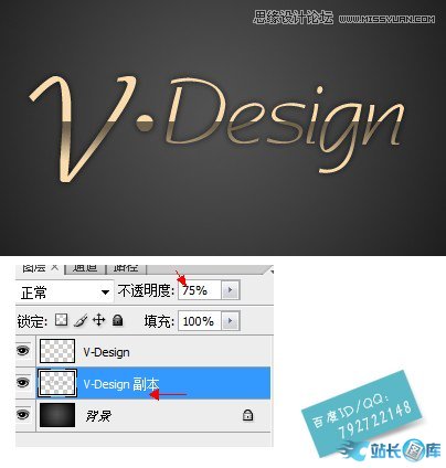 9.选中文字那层,摁crel+J复制一层,得到一个副本图层,摁ctrl+U,把明度改为"-100″,把副本图层移动到原图层的下面,滤镜—模糊—高斯模糊(半径:3像素),然后把该图层的不透明度改为75%。