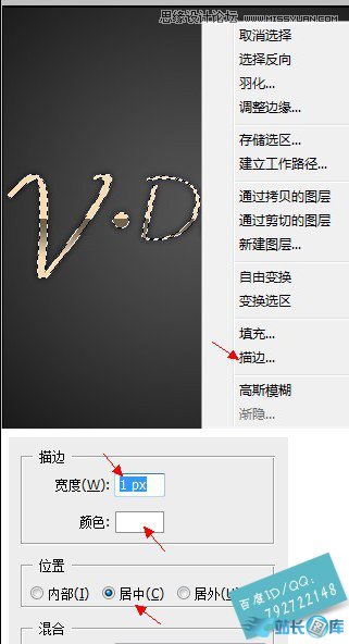 11.摁ctrl+shift+N新建一个图层,使用选框工具在图像内点击鼠标右键,选择"描边",宽度:1px,颜色:白色,位置:居中。然后摁ctrl+D取消选区。