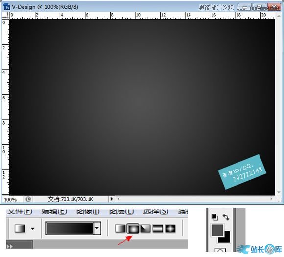 2.用渐变工具(径向渐变)做出图中的渐变。(前景色为深灰色,背景色为黑色)