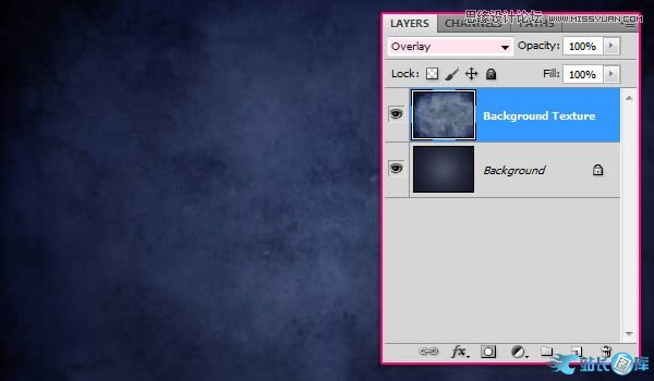 将质感的渐变背景层之上并改变其混合模式为叠加,然后调整它需要。