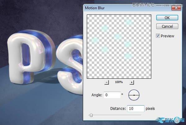 转到滤镜>模糊>动感模糊,设置角度为0,距离10。
