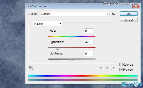 去图像>调整>色相/饱和度,改变饱和值-60。