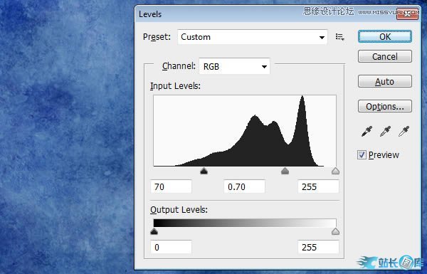 打开更多垃圾VI的纹理然后去图像>调整>色阶,更改阴影值70和伽玛值至0.70。