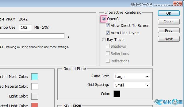 此外,去编辑>首选项> 3D,并确保OpenGL的交互式渲染下启用。