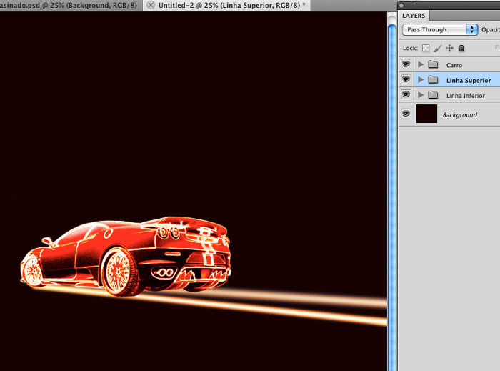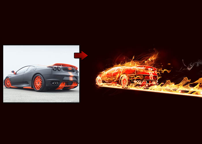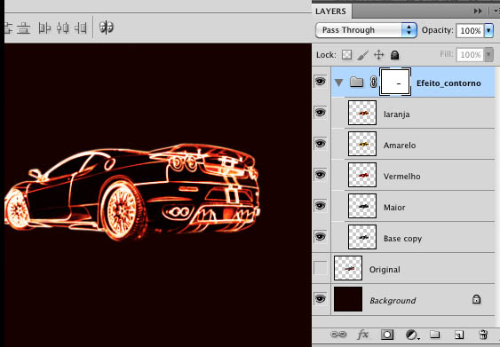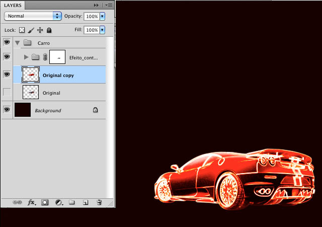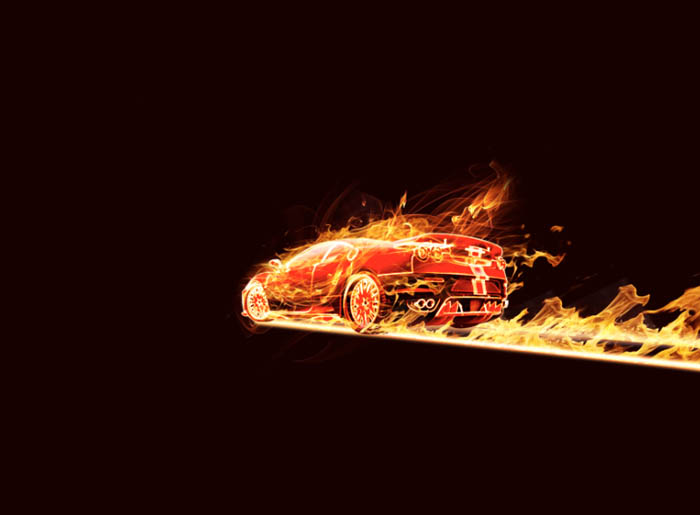 3、现在我们已经得到了汽车的轮廓,我们将不得不适用于光的效果,因此它看起来就像一个燃烧的汽车。