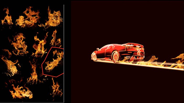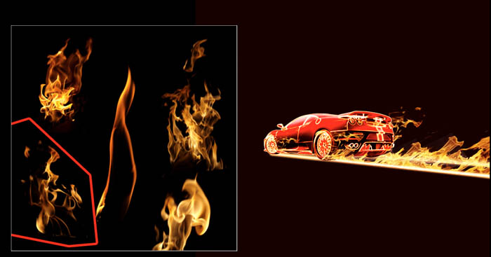 6、现在让我们开始在我们的作文中混合一些图像。获取一些火焰图像广告开始增加他们在你的形象。请注意,他们在黑色的背景火焰图像,这种方式可以使用混合模式和黑色的屏幕将是透明的。