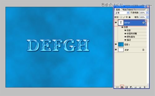 4、双单击defgh文字图层进入到图层样式,分别勾选投影、斜面和浮雕、颜色叠加、描边选项。如图4所示。