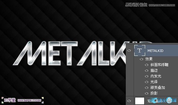 本教程主要会用Photoshop巧用图层样式制作银色金属字教程,这是个非常简单的金属字体教程,只用到一次图层样式,做出来的效果无论是色泽还是色彩的更替都非常的棒。做的同时,注意图层样式每一步造成的字体的不同变换。