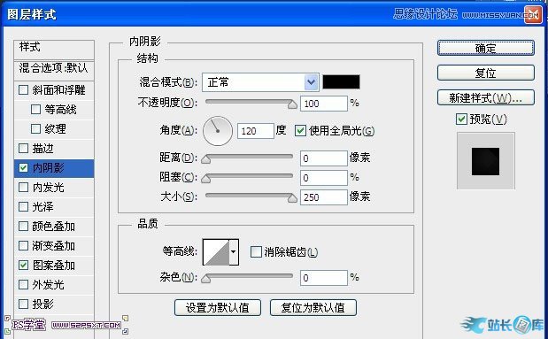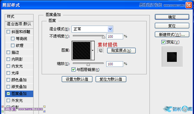 2.我们给背景副本图层添加图层样式--图案叠加,这里的图案素材提供(下载好后,编辑--预设管理器--载入即可)
