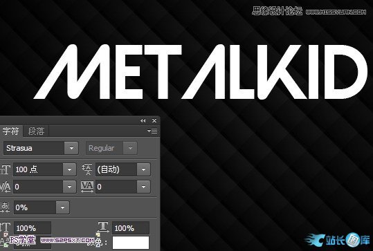 3.用我们素材提供的Strasua字体,打上"METALKID".