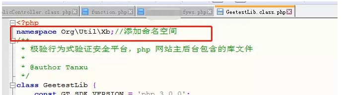 此处牵扯到thinkphp引入第三方类,我把第三方类放到Org/Util/Xb下面了,同时对该类文件加入命名空间如下,否则实例化类时找不到文件