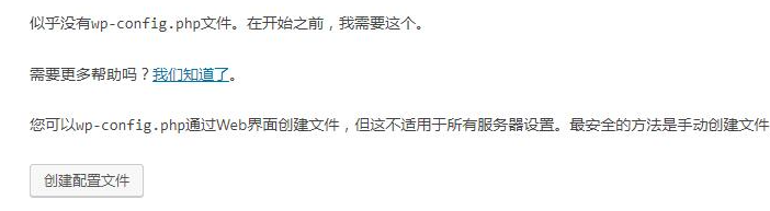 检查一下网站目录下是否存在wp-config.php文件,如不存在新建一个wp-cpnfig.php文件。