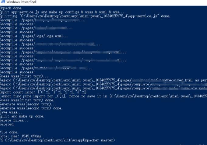 7. 反编译完成,用node wuWxapkg.js filepath执行成功后